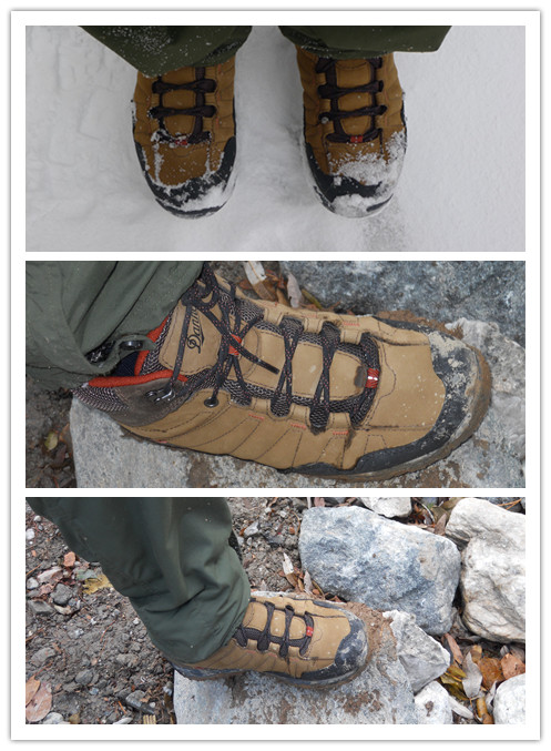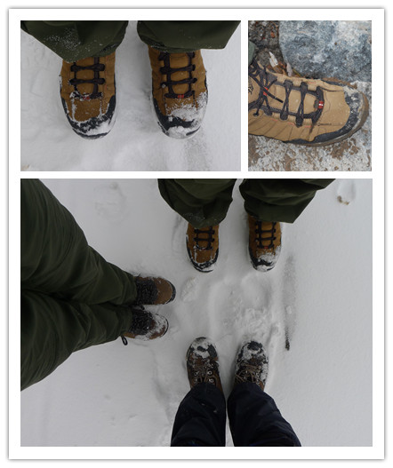 鞋子在雪地中的表现也相当出色,经过6小时左右的风雪中行走,鞋内没有出现渗水现象。