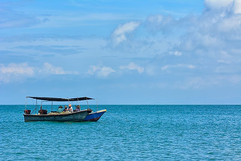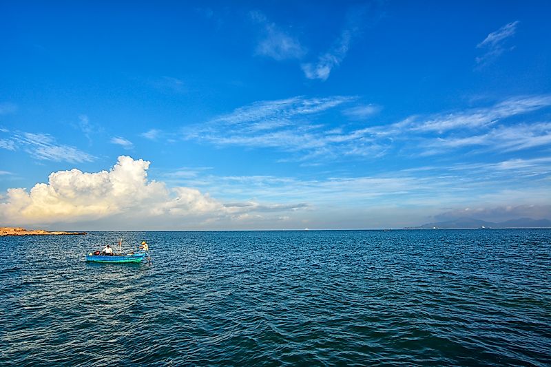 船上劳作的渔民