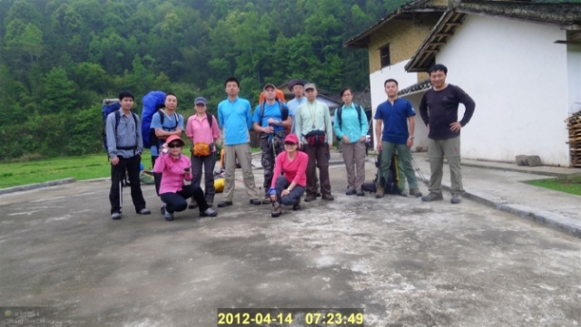留洞村是安静的小村庄,有几十户人家,非常干净。早上起来借用老乡家的井水煮面,和老乡聊聊登鸡啼石的事情,老乡说她们一般2个小时就到鸡啼石了。(后来想想不太可能,15KM的路程在那里摆着呢,他们说的可能是沿着溪谷直接上到鸡啼石西南方的营地附近的一个垭口)。