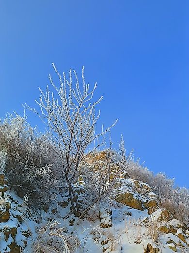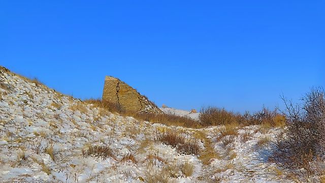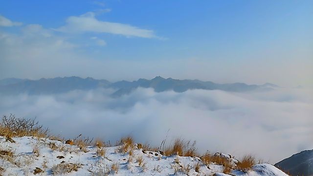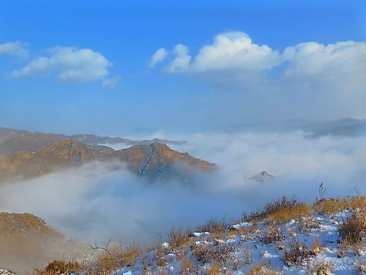 第一天白天,大雪、大风、大雾,晚上变狂风。晚上在山顶一个洞里过夜,我想这种经历会留在记忆里的。北方冬季晴朗的夜晚本来就低温,加上9级左右的大风,风寒效应不可想象。。。在露天扎营很可能就悲剧了。熬过了第一天,第二天倒是天气晴朗。。。