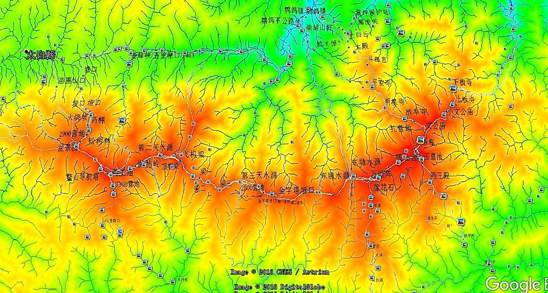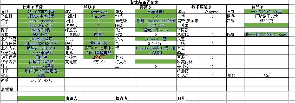 这鳌太是秦岭上的最高峰,检查地图,一条明显的东西走向龙啊,东方太白山为龙头比较高,海拔3700多,西方为龙尾鳌山比较矮海拔3400。按风水密术来说,爬龙背这可是要触霉头的,每年大致有30多人命丧于此。可这是龙背啊,所以每个人都想上去走走。这里冷暖空气,经常博来斗去。一小时前还是蓝天白云,一小时后就会乌云滚滚。所以凶险异常,冬天行走有几大杀器,一狂风,二暴雪,三滑坠,四迷途,五野兽。强度应该没有狼塔大,但难度比狼塔强。没有充分的装备,千万别去爬鳌太。为免后人,下载一条轨迹,背个小包就上,最终命丧此山。准备工作最少要有三项,一体力,二装备,三预案。两份表格我都会粘帖于此帖,以资后人参考。背包不超过20KG,当然也欢迎索取。