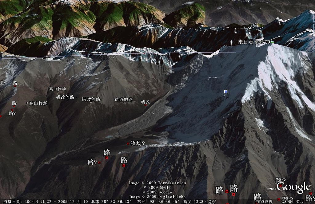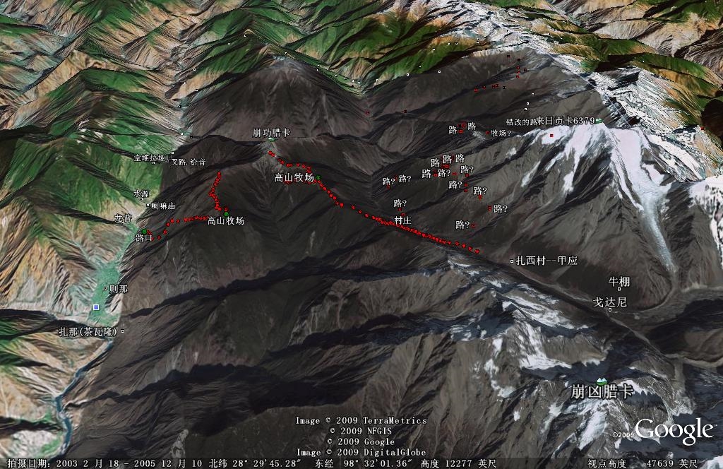 如果你喜欢玩google earth,那就很好办了,全部3D地形都可以在空中鸟瞰到,请下载kml文件解压:
