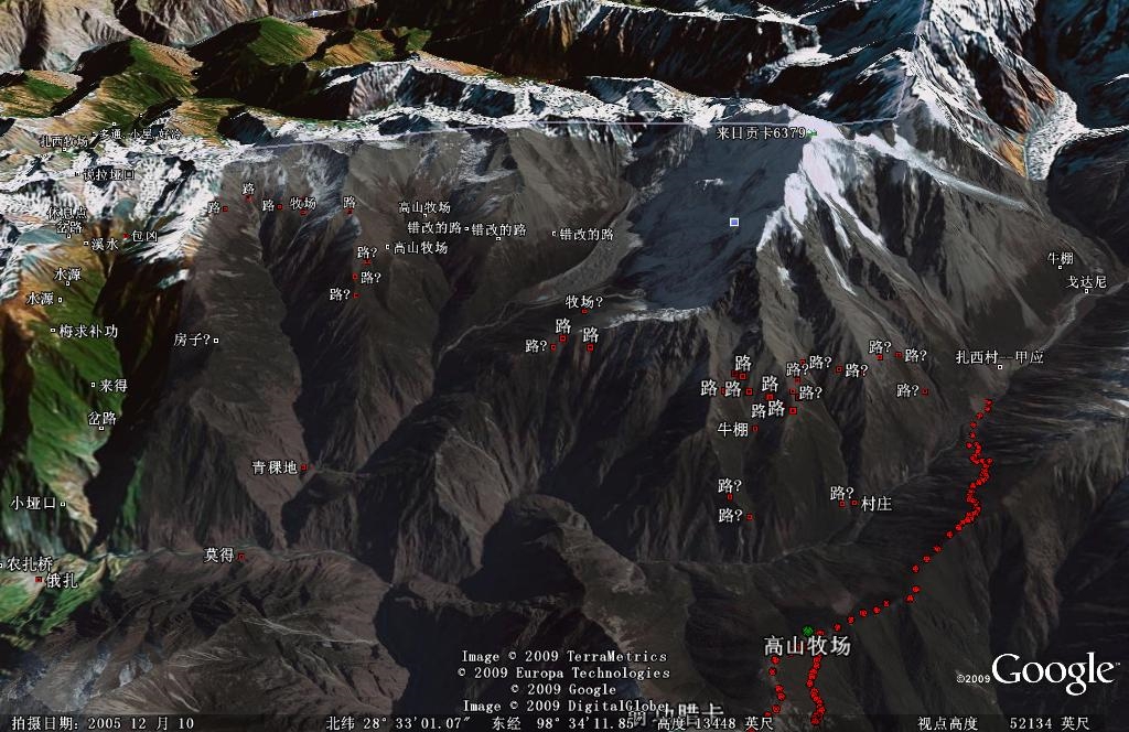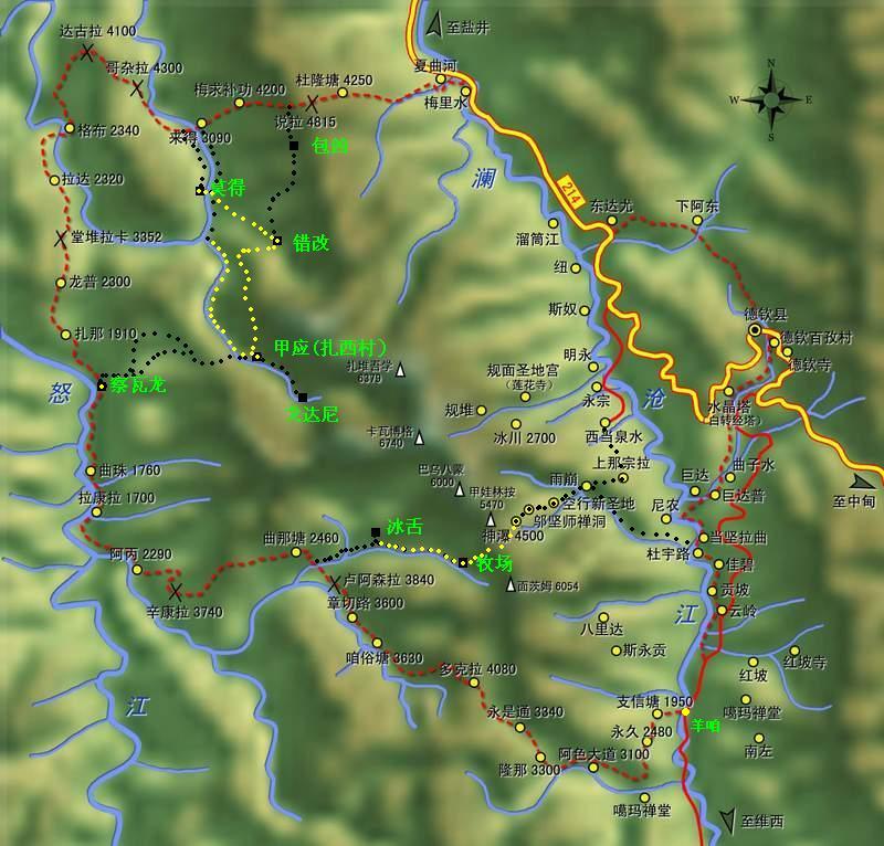 甲应(扎西)——错改——莫得,这部分山路还不是很清楚,可能有待实际访问考察才能得出结论。
