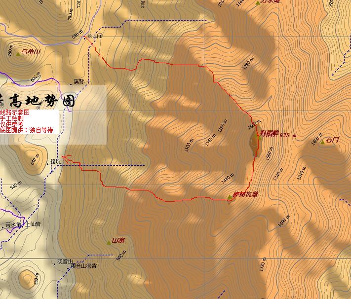 ②手工标示的线路可能有误,尤其是下山后半段未进行实地、地图核对。
