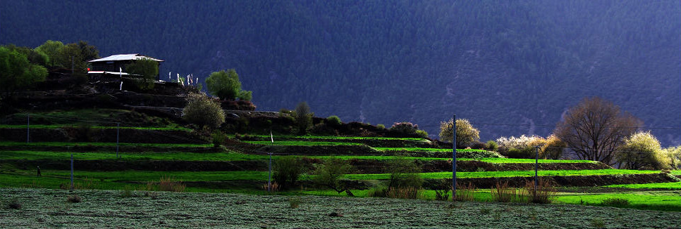 鬼使神差,我一直觉得去派镇要办边防证,白白耽误两天功夫,直到十号才到了八一,十一号下午同另三个走墨脱的一起到达派镇,保安又没问我要门票,看来我的装束真是尽显民工本色啊。第二天找到了直白笑嘻嘻的旺扎,我们约定第二天他们前来,第二天他们一行三人果然如约而至,吃过饭,马上买绳子塑料布鼓风机一应杂物采购完毕,他们带上我的包包不知所踪,我跟北京一个大师模样的人一起前往大桑树摄影,玩了好一阵,天快黑了才在尼定村公路最高的那里见到旺扎,他用摩托车把我弄到他家,下坡又陡又急,开得又快,我穿件迷彩,冷死我了。