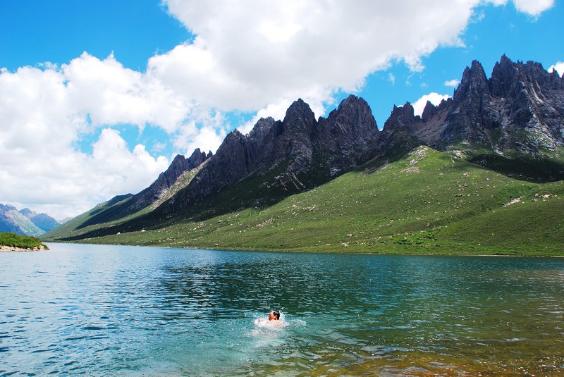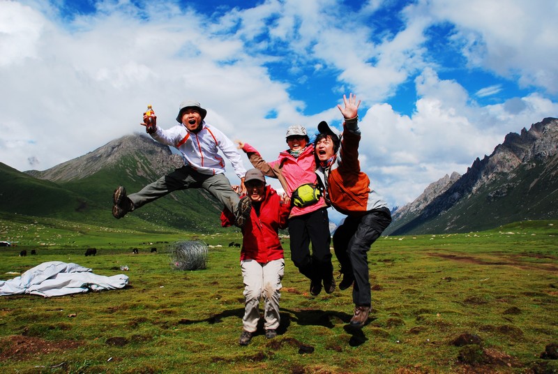 我们此行是幸运的,要什么就有什么!要可乐,藏民拿出了可乐;要坐车,汽车就出现啦,而且跑也跑不掉(陷烂泥里啦);要西瓜,西瓜也出现啦;要看雪山海子,上天竟然下了雪,7月飞霜啊……