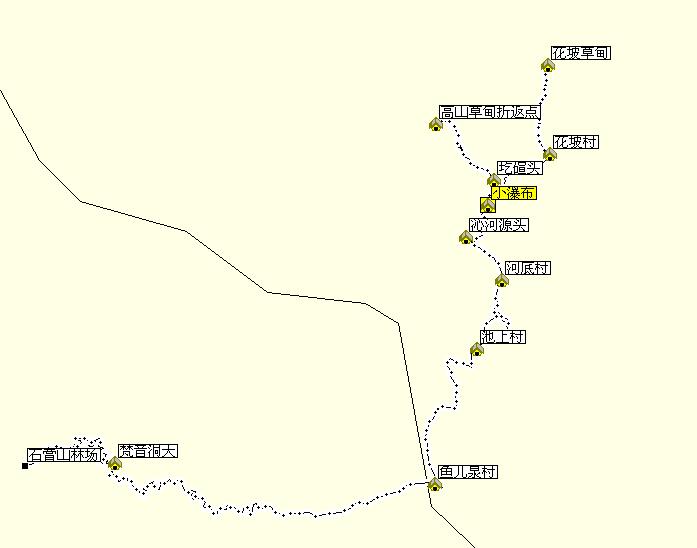 3、圪碹头下小瀑布(有相对充足的水源,大块平地,比较理想的营地,不过有出现灵异现象的可能。不推荐)
