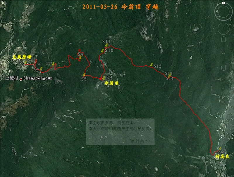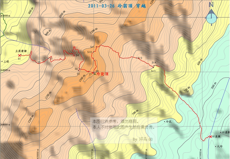 下面为实际的冷翁顶穿越线路: