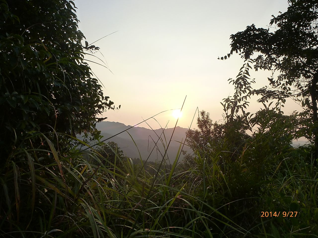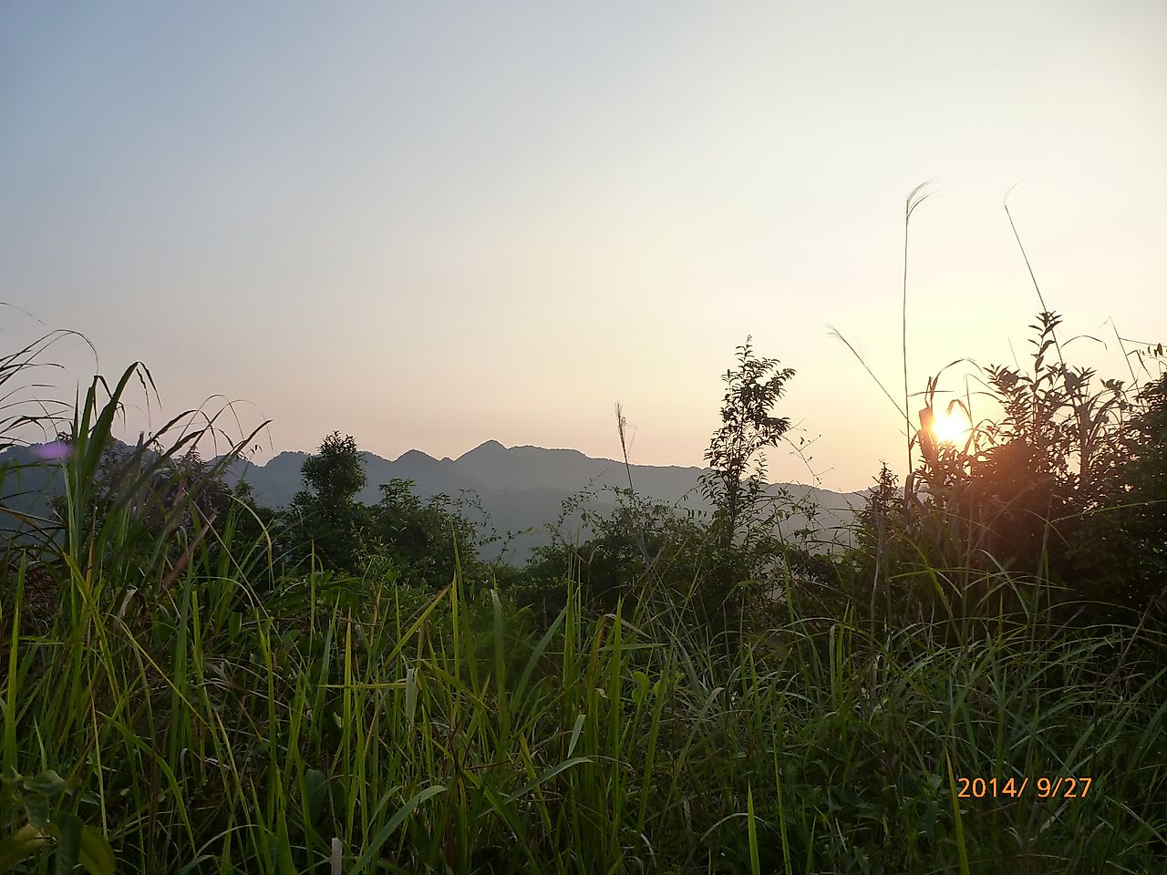 这次登山,背负的20多斤重量一直把我压得喘不过气来,根本没有心情去欣赏沿途的风景,自己一直在想,我怎么这么sb,跑到这来受罪?我们去户外活动,不就是为了欣赏沿途的风景吗?我们这么折腾,不就是为了几十分钟的时间看一下山顶的风光吗?在前往明山村的途中,遇到的村民对我们的活动十分茫然,一直认为我们是去办什么事情而不是吃饱了没事干去爬这让山里人都厌烦的山。直到我爬上了银窿顶,在1300多米的高山上,我才体会到,什么是山高人为峰----当站在高山之巅,我们就超过了山峰的高度,以我为顶了,在登山的过程中,我克服路途的艰辛战胜挑战了自己,这就是所谓的无限风光在险峰吧。这种感觉,无法用文字描述。下山的途中,也许是在山顶吸够了李嘉书记所说的桌板大的负离子,我又渐渐恢复了体力复活了,在距离终点还有1公里多的下山路,我竟然兴奋得小跑着下去了,途中还拍了夕阳下山的照片,全然不管旁边骑车而过的村民说我们是群癫古、疯子、狂鬼。