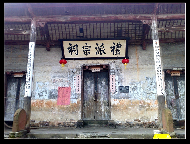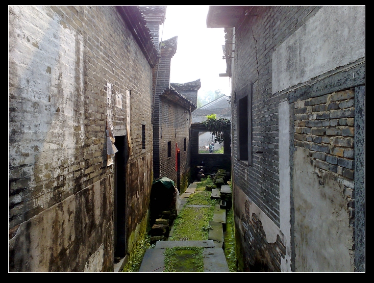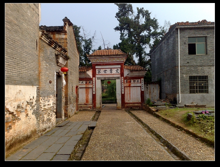 村口是一片很大的池塘,池塘的后面便是翰林第,红军时期,红四军军部就驻扎在这里。青石板、鹅卵石铺就的小路蜿蜒在高大的建筑中,形成一条条窄窄的小巷,通往家家户户。村里的孩子们聚集在一起玩耍,看到我们到来,有个孩子还表演了一把爬墙绝技。写生的画家或准画家们在专心致志的工作,热情的乡亲们不厌其烦的为我们指引着道路。斜阳透过秋枝,映在破损的土石路面,老房子与旧围墙上挤满了攀生的残绿,将日子歪扭扭地催老 。古老的宅院、参天的古树、波光粼粼的池塘、绕村而过的富水河,在斜阳的映射下,显得更加和谐、古朴、静谧,宛若画卷。如果不是已经斑驳陆离的院墙上还依稀可见的“打土豪、分田地”等标语,无论如何也不可能将渼陂和那场残酷的内战联系到一起,逝者已逝,江山依旧,轮回就是中国的宿命。默哀,为了那峥嵘岁月中逝去的魂灵,和平真好!