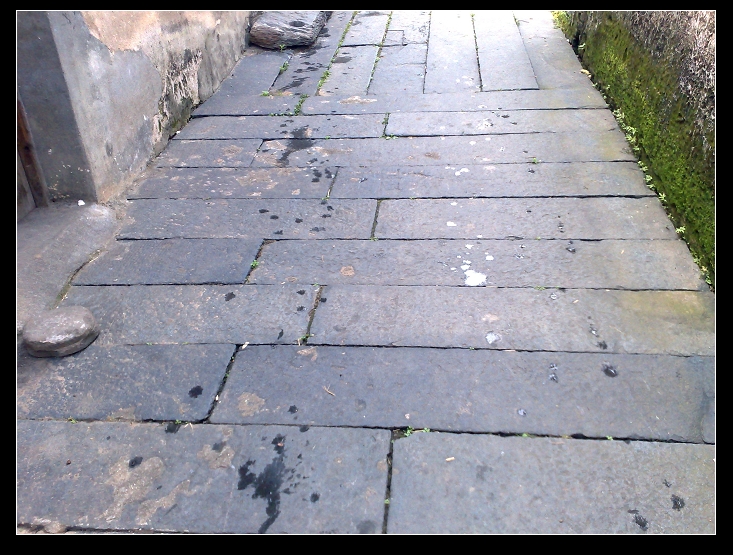 通往集市的路两旁并没有茂盛或有序排列的树,三三两两,树种不一地立在街边屋前,随意表达着一种向城镇化迈进的立场,经受着驱来过往的尘土。往来的主人并不在意它们是否在慢慢长大,渐渐变老 。如今,被岁月打磨得光滑可鉴的鹅卵石在脚下蔓延,老得发黄的岁月在曲曲弯弯的巷子里静静沉淀,白墙上、门楣上,商号依稀,木制门板上,漆色模糊。仿若热闹的叫卖声、喧嚣的市井声,穿过时空的隧道,如潮涌来。不管是精雕细刻的抱鼓、柱础、蹲狮、门磐上的石雕,还是栩栩如生的牌楼斗拱、屏风木窗上的木雕,或者是呼之欲出的《百老图》、《百少图》等大型彩绘,依稀映染着当年的繁华与辉煌。