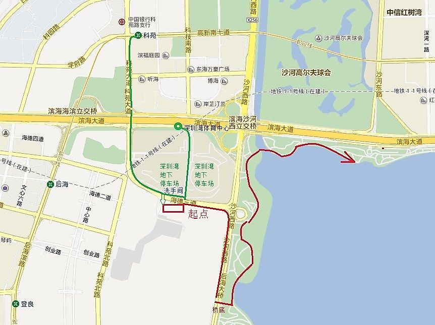 周边公交:● 地铁2号线(蛇口-新秀)科苑站 A出口● 深圳湾体育中心-公交车站(车次:58路; 72路; 80路; 229路; 322路; 337路; 353路; k204路; m347路; n24路)● 不建议从地铁后海站过来,因为地铁后海站到起点的路被封了,需绕远路。