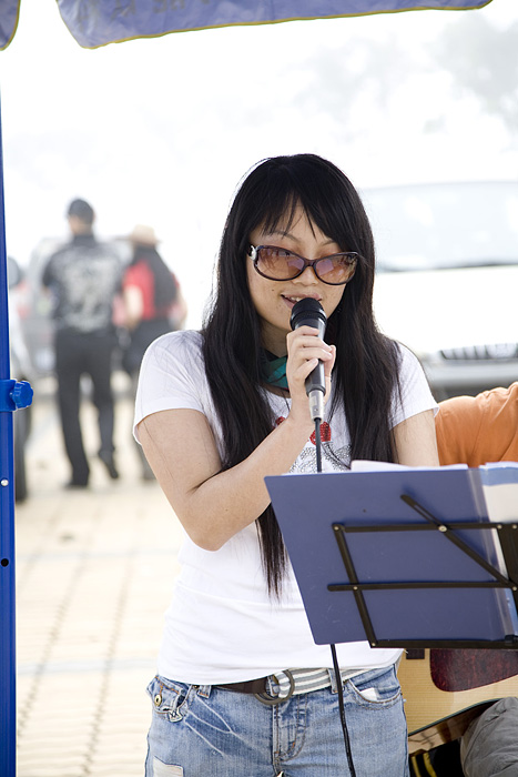 2,在山海大观第四个签到处,义工们居然唱歌吹号为驴子加油,百公里在这里变成了嘉年华。拉拉队的主唱星子mm也是一直神交已久的驴友,特的为我唱了一首:你在我心中。三洲田的冷风瞬间变得温暖。