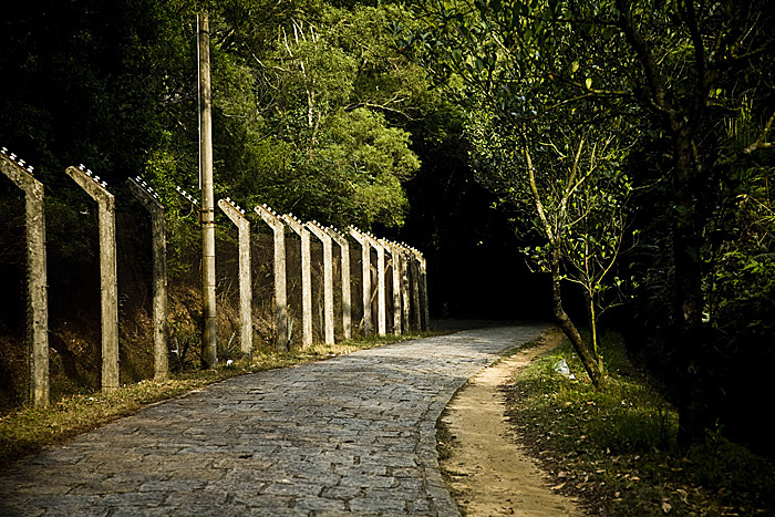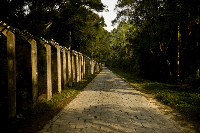 开车从梧桐山村回大梅沙,是走梧桐山二线关,早上洛洛不绝的驴子已经没有踪影,唯有一缕缕的夕阳穿过二线关的铁丝网照在斑驳的石板上,蓝天,夕阳,一排排栏杆,青石路。。。构成一幅静谧,美丽的图案,只有轻微的马达轰鸣声。我和坐在副驾的糖排几乎不能呼吸,这是另一种的百公里,没有喧闹,没有驴子,地上甚至没有一点垃圾,很难相信这是几千人走过的路径。