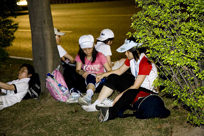 玫瑰海岸热闹非凡,传说中撤销的签到点还在工作,沙滩上坐满休息的驴子,每一位一拐一拐到来的驴子都受到英雄般的欢迎,我开始为那些很早到达大梅沙,被告知玫瑰海岸签到点已经撤销的驴子感到可惜,最后的11km虽然困难,可是都坚持了90km,为什么早早的在18:00就到处散步玫瑰海岸被撤销的消息呢?走一次百公里真不容易,因为被骗而没有走到真正的终点的驴子,一定遗憾的想自杀。