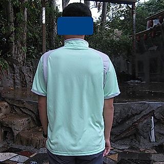 男款L码 试穿人身高173CM,体重70KG 样衣为绿色,实际成衣是蓝色。
