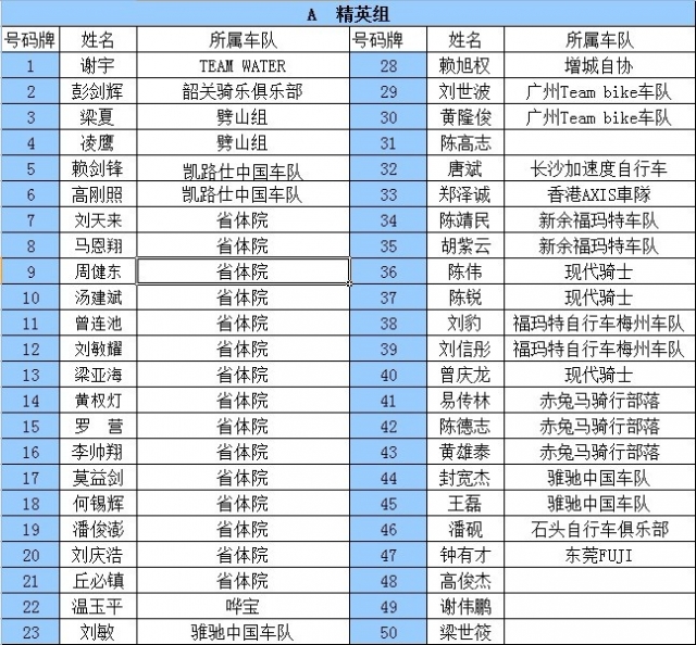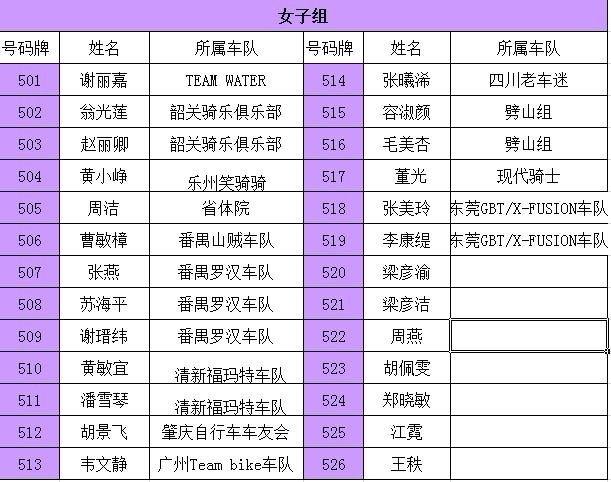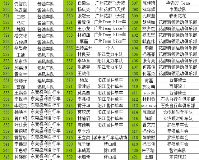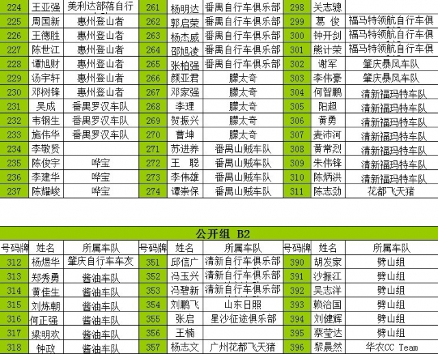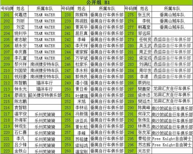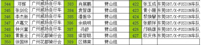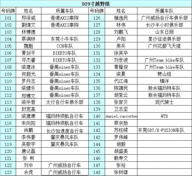 Nationality A精英组 B普通组 C女子组 D29寸越野组 所在车队名